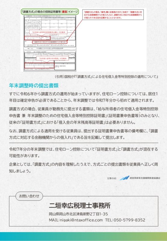 令和7年分の年末調整では、住宅ローン控除について「証明書方式」と「調書方式」が混在する可能性があります。